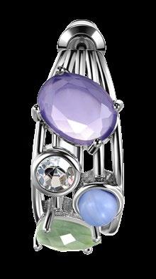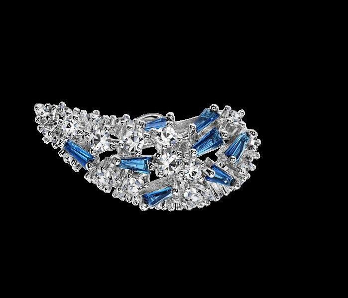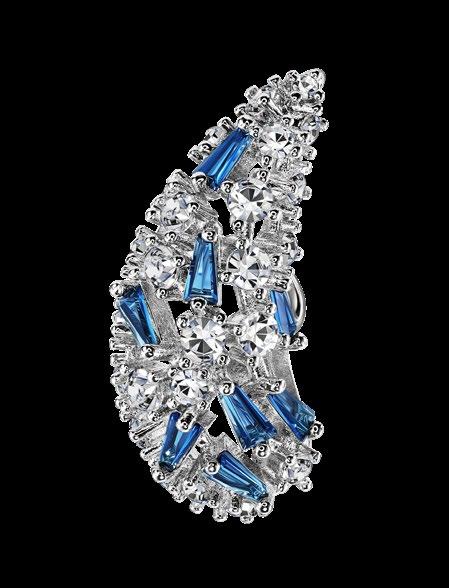 Latón, cristal, titanio, ágata de encaje azul natural, circonita cúbica. Medidas: 2 cm. 70 unidades disponibles.