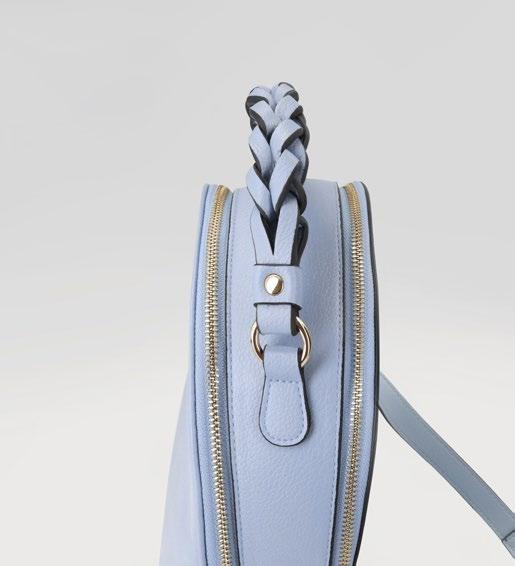 Con detalles dorados y un asa superior trenzada a mano