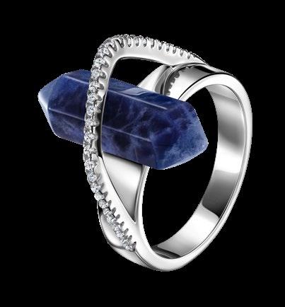 Anillo Ocean Sodalite Latón, circonita cúbica, piedra natural de sodalita. Baño de plata, recubrimiento electroforético. Seguro de níquel
