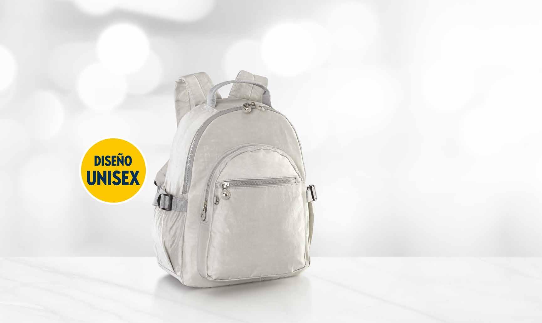 Diseño plegable para ajustar el tamaño y cierre metálico.