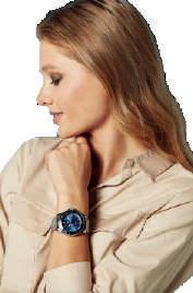 Inspiración náutica, con correa de malla metálica tejida ajustable y caja plateada con azul acero.