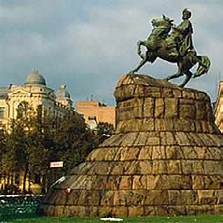 Statue og veggmaleri av Bohdan Khmelnytskyj i Kyiv. Foto: HansWilhelm Steinfeld.