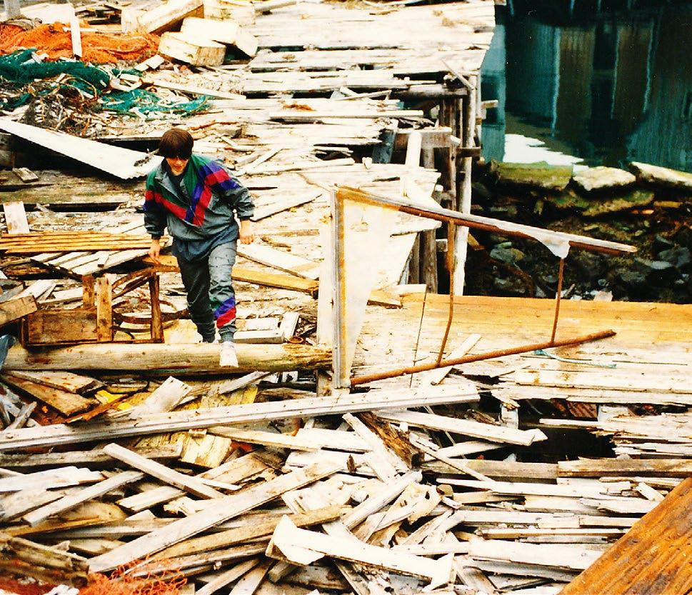 munesenteret Myre sammen med familien. «Vi unger merka at det var noe på gang, men vi greide jo ikke sette ord på hva det var.» Han husker at det var ei egen stemning – som om de voksne hadde satt det meste på vent. Dårlige vinduer ble ikke skiftet ut, husene ble ikke malt. Forfallet ble etter hvert synlig. Så kom lensmannen og flere fiskebruk ble stengt.