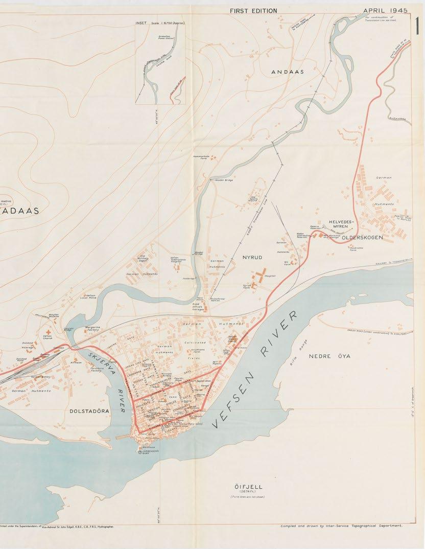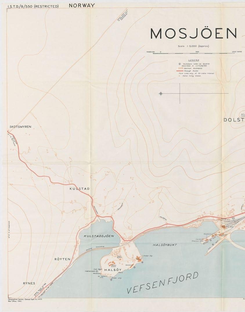 Britisk etterretningskart over Mosjøen fra april 1945.