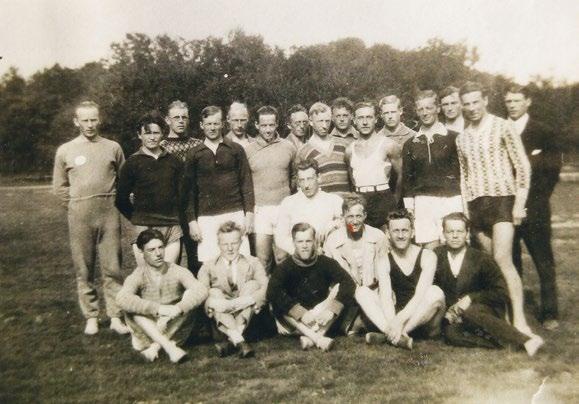 På 1930-tallet gikk Forsvaret på sparebluss. Det fastlønte befalskorpset var redusert fra 5000 til 600 mann, og rekruttskolen varte i 84 dager. Det ble ikke holdt repetisjonsøvelser, og innkjøp av våpen og utstyr var på det nærmeste stanset. I mangel av radioStatens Gymnastikkskole ble etablert i 1915 med én militær og to sivile linjer (lærer- og lærerinnelinjen). Skolen var toårig, og det siste året ga videregående opplæring. Bildet viser deltakere på forsvarets kull 1927/1928. Asbjørn i bakre rekke som nummer sju fra venstre. Privat foto.