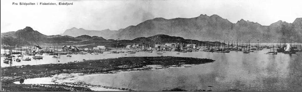 Silden kom i forskrekkelig mengde, med hval, sei og sprut i sitt følge, og den stod så tett at den kunne snu en båt rundt. Den forvandlet den bortgjemte, folketomme Eidsfjorden på Langøya til en eneste stor markedsplass. […] Silden ble stengt inne i pollen og ble liggende der i måneder og råtne. Folk var ikke rustet til å ta imot den, båtene var for små, sildoljefabrikker fantes ikke, jektene gikk det sent med, og de to Bergensdamperne greide ikke stort.