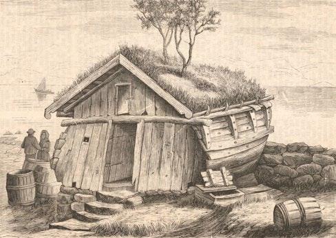Risøyhamn handelsstad. Dei nye eigarane av handelsstaden pussa opp, moderniserte og bygde nytt. Det gamle våningshuset, der dei eldste delane var frå tidleg 1700-tal, vart renovert med innvendig panel og tapetsert, og huset vart varma opp av store vedomnar. I 1868 hadde branntaksten på eigedomen vore 150 spesidalar (600 kroner). Etter alle utbetringane og nybyggingane var branntaksten i 1875 på 2180 kroner, altså ei knapp firedobling på sju år. Foto frå boka Underveis