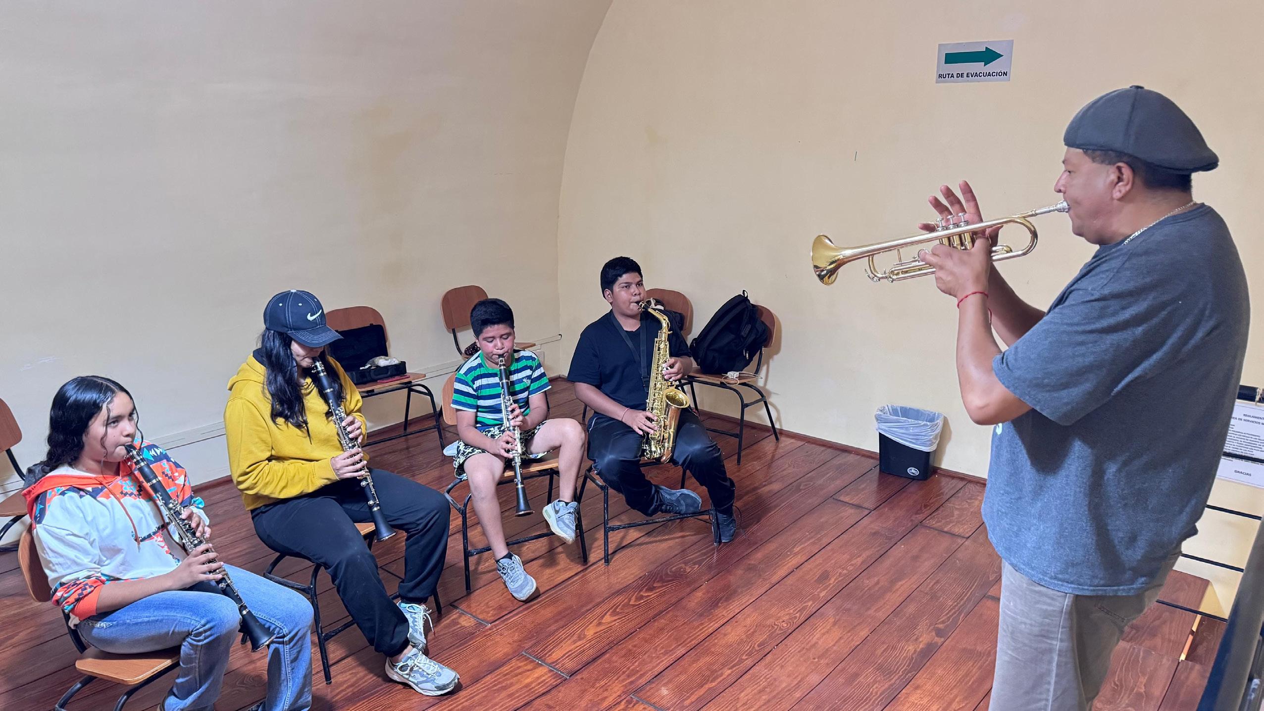 Este proyecto, realizado con el acompañamiento del maestro Manuel Guerrero, abre la puerta para que niñas, niños, jóvenes y adultos de la comunidad aprendan a ejecutar instrumentos de viento, metal, madera y percusión. Para muchas y muchos, es el inicio de un camino musical que fomenta la disciplina, el trabajo en equipo y la inspiración personal.