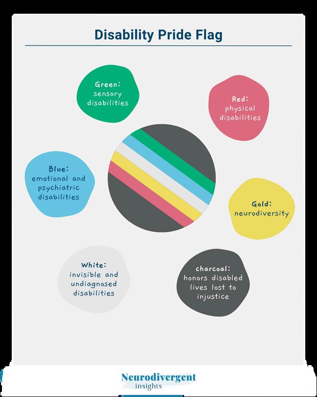 Disability Pride Month began as a commemoration of the passing of the Americans with Disabilities Act in July 1990 The month (and the flag!) celebrates people with disabilities, their identities, their culture, and their contributions to the world