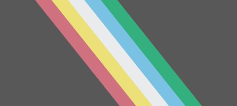 The original flag was created in 2019 by Ann Magill, a disabled woman, and featured a zig-zag design. After receiving input from people with visually triggering disabilities, the flag was changed in 2021 to have muted colors and straight diagonal stripes