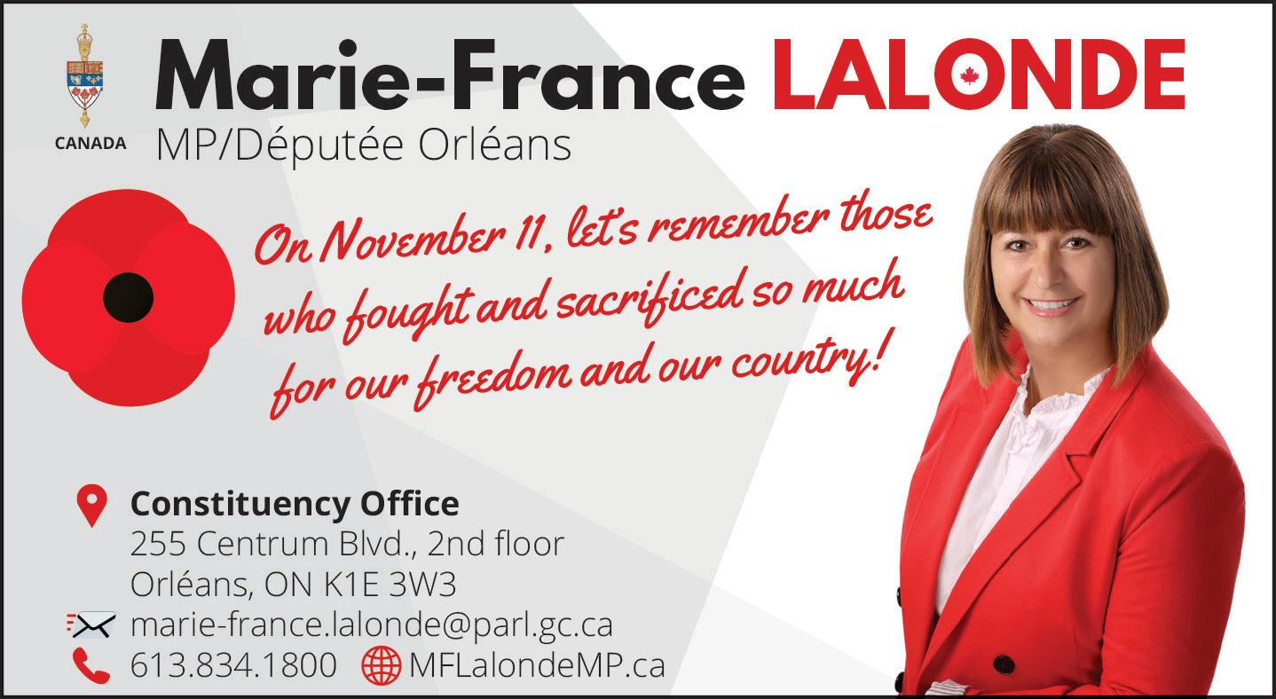 On Monday, I laid a wreath at the Orléans Legion cenotaph during the annual Remembrance Day ceremony on behalf of Canadians in honour of the sacrifices that were made – and that are still made – to ensure our country’s safety and freedom.