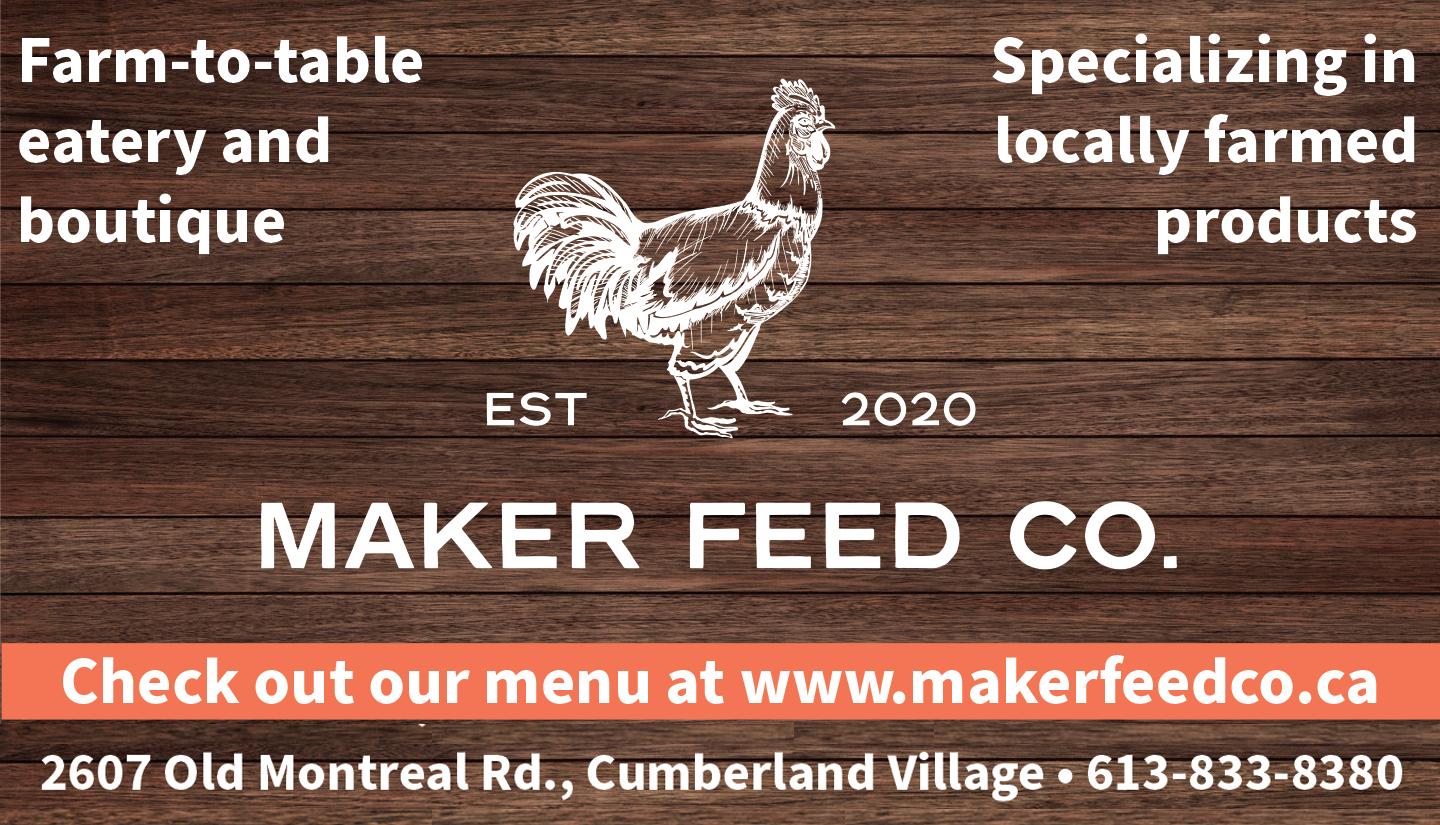 Maker Feed Co. is owned and operated by Chef Michel Gaumond. It is located in the Ferguson House at 2607 Old Montreal Rd.