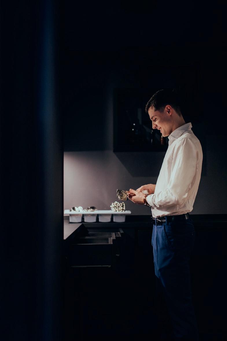 Très certainement, mais je dois vous avouer que je m’en fiche complètement. Je suis quelqu’un de naturellement discret même si cette discrétion, je ne la cultive pas. Comment vous dire : je me vis comme un besogneux… Pour moi, c’est important de travailler en priorité avec et pour les équipes, même si je ne suis pas « aux casseroles tous les jours », car bien sûr, j’ai pas mal d’autres choses à assumer. Mais, midi et soir, je suis là à chaque service et j’ai également la chance d’avoir deux seconds qui sont formidables. Nous tous, nous savons faire face à la pression qui nous est imposée : il nous faut sortir quotidiennement des prestations haut de gamme et tout cela, dans le cadre d’un savoir-faire à la française que nous ne perdons jamais de vue, car nous savons bien que nos convives s’attendent à ce haut niveau-là. Alors, je garde un œil sur tout ce qui quitte la cuisine pour être servi.