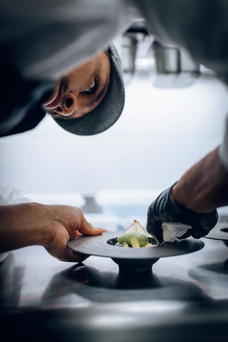 On ne cesse sans doute de vous le faire remarquer, mais il faut bien reconnaître que vous êtes l’auteur d’une carrière rare parmi les grands Chefs… Oui, je le reconnais bien volontiers. J’ai tout d’abord été élève du Lycée Hôtelier de Monte-Carlo. À la sortie de ce lycée technique, j’ai en quelque sorte fait mes classes dans plusieurs établissements prestigieux de la Principauté. J’ai officié successivement au MonteCarlo Beach, à l’Hôtel Hermitage puis à l’Hôtel de Paris, en 1982. Cinq ans plus tard, en 1987 donc, à l’âge de 23 ans, j’ai été sollicité pour pourvoir à un remplacement de sept mois dans les cuisines du Prince Rainier. À l’époque, je me souviens m’être simplement dit que c’était une belle opportunité de travailler dans le contexte sans égal du palais princier.