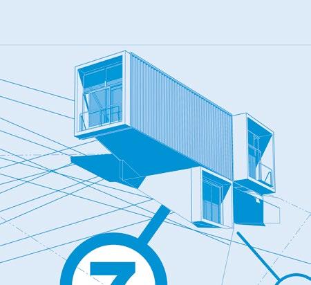 Shown opposite is the site assembly process, describing how the mutually-counterbalanced loads are sequenced during the construction. Every aspect of the job is prefabricated and assembled on site, including the footings. The layout of both schemes, with their extreme cantilevers, shows off the natural strength of the containers monocoque construction.