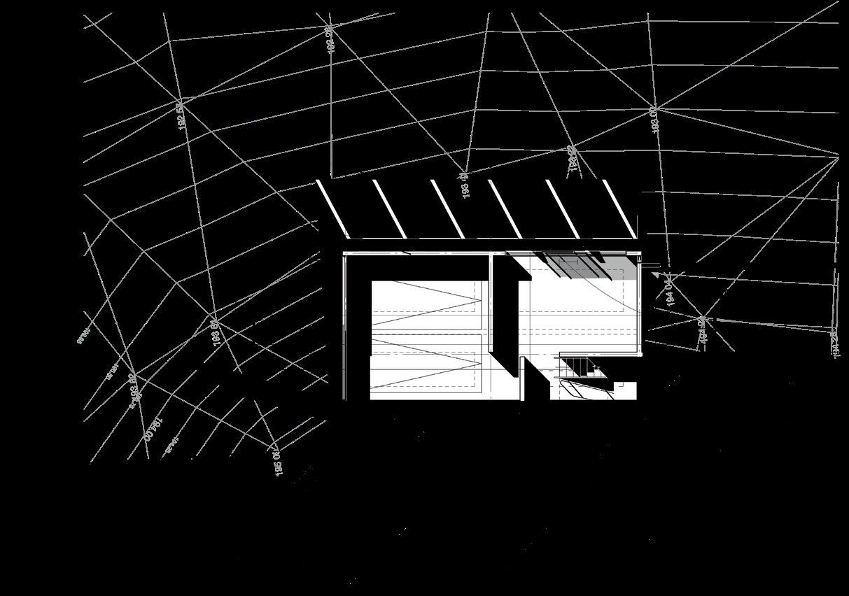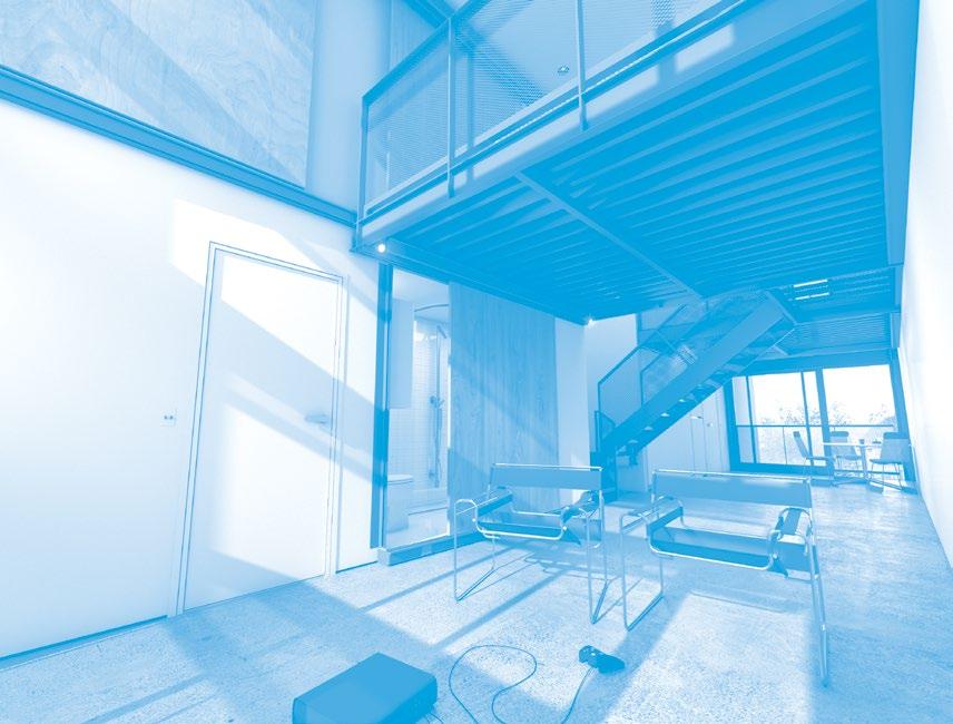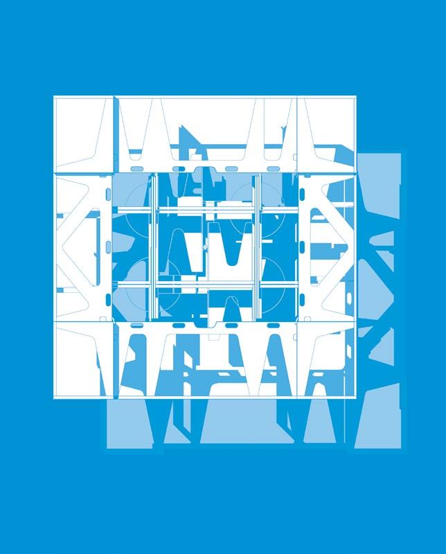 And despite the snark about breadand-butter, this scheme is also an example of the J,P:A belief that every project should strive to be exemplary: becoming subject to wider replication, as a type or model, as even a vernacular movement. In this sense, the attitude is distinctly Miesian. The units are designed as idealized spaces, with each component reduced to what Barthes called its “condition degree zero.” So, the program wall is condensed into a special zone of sliding and folding panels, opened to reveal various activity-supporting cabinets, each tailored to their specific requirements and all out of the way of the living space, which itself is bare of any distractions. When the panels are not opened, the program it hides is taken out of the equation, leaving the adjacent erstwhile supported space free to be used for other things. This living volume is either one or two stories; a simple tube of space. In the case of two, floating platforms and access stairs divide it spatially up into defined volumes without walls so that the platforms are both included and private, while the areas beneath the platforms gain an intimacy without enclosure. Opposite the topologically quilted program wall is a pure, smooth mural surface that is available for any adornment, yet requires none.
