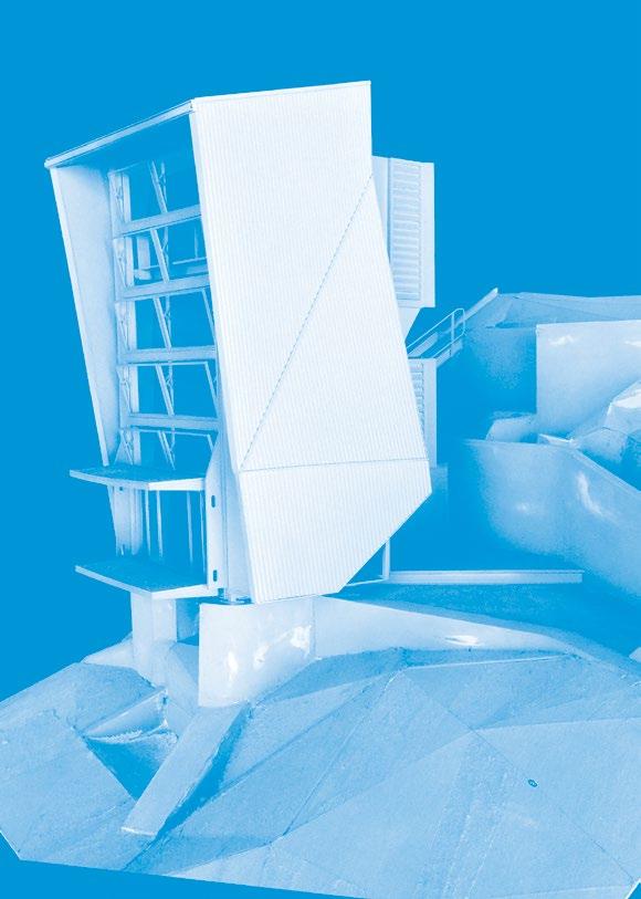 The Chiller / Cogen. project was chosen for the exhibit because of the availability of the bitchin’ overlayed linework, drum-scanned from the original ink-onmylar drawings. The unbuilt Towerino, which had gotten through the Design Development phase but was still facing a substantial entitlement battle with City of LA Planning (and neighbors!) was included because we wanted to build a model of it anyway and had no other occasion. Multiple versions of this project are presented elsewhere in this volume, while the UCLA plant is covered in an earlier monograph, Instrumental Form.