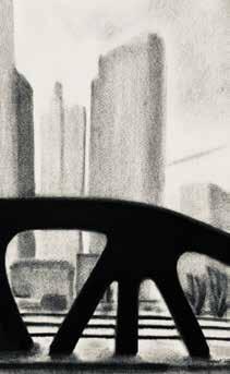 Image 0.3 Clark Street Bridge, Chicago. Charcoal drawing by Phil Enquist, 10 × 14 in.