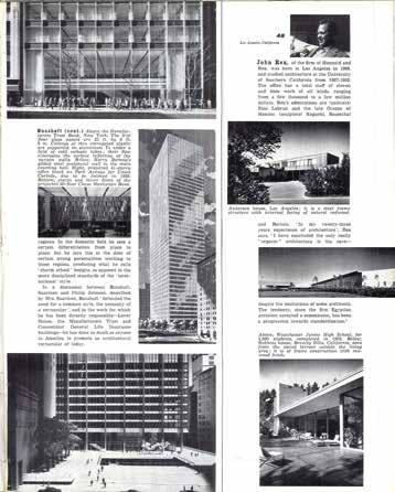 Genetrix tried to identify and collect the history of those characters who were contributing in a practical way to the establishment of modern architecture in the US during the 1950s. The section is an important record of those architects in the late fifties who were actually planning and building works of architecture and urbanism throughout the country. It is a valuable record, which, beyond emphasizing personal trajectories, collected some of the fundamental ideas behind the works of this outstanding group of architects. According to Architectural Review, it attempts to trace each contribution to its source in a man’s background, training, the vicissitudes of his career, his heroes, his outlook and his inner convictions. It is specially designed to give architects outside America a more rounded picture of the American architectural scene.8