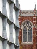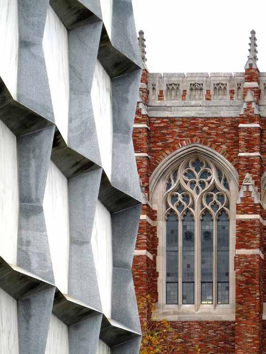 On the right: The Beinecke Library with Lillian Goldman Law Library in the background.