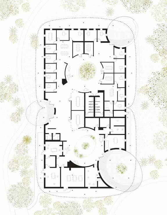 • Locate passive and active social spaces aligned with existing tree groves