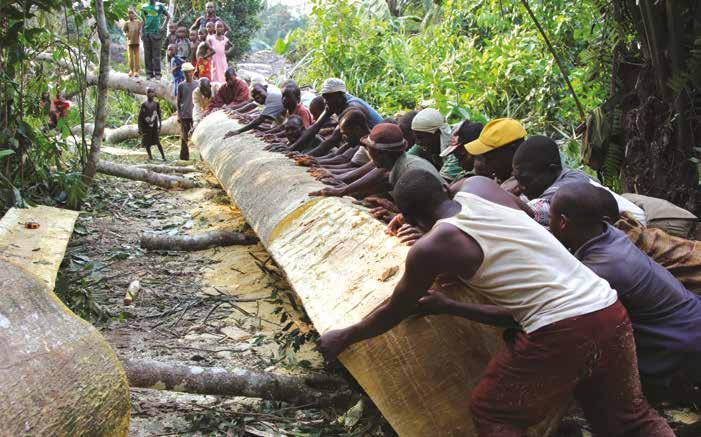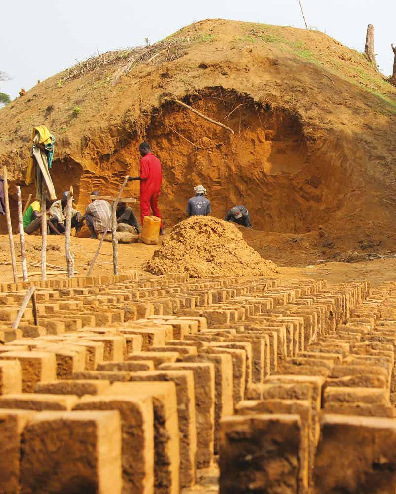 Despite the vastness of the forest, land and trees in Ilima were well accounted for, each parcel and tree associated with specific families. Rights to individual trees were typically exchanged for labor. In return for felling and milling a tree, builders would keep offcuts or sapwood boards. A similar system governed other materials, with transportation priced by volume and distance, creating a dynamic market for delivery and logistics. The majority of materials reached the site by foot, having been cut, dug, woven, or produced on or near Ilima. Some were carried by bicycle, including the palm oil used to seal bricks and wall plaster, which traveled two hundred kilometers from a factory in Boende.