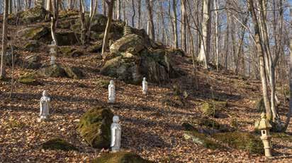 Tashiding encompasses meadows; a stream with a beautiful stone bridge; a rocky ridge with a stone stair leading to the many trails above; manicured gardens of roses and peonies; a lake with a teahouse, colorful koi, turtles, and water plants; a beautiful swimming pool and pool house; an aviary; a children’s playhouse and slide; and the handsome fieldstone house that melds a nineteenth-century section with the contemporary expansion. A place for strenuous hiking as well as quiet contemplation, Tashiding offers options for being in nature in many ways, at every time of year.