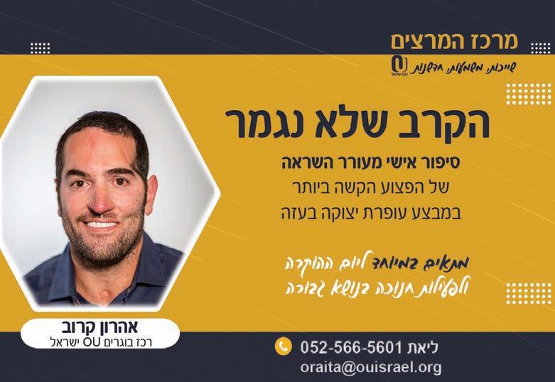 70 TORAH TIDBITS 1497 / MIKETZ 5783 FOR YOU IT IS A TACTICAL TRAUMA KIT FOR THEM IT IS A LIFE! $360 TO SAVE A LIFE UNITED HATZALAH HELP SAVE LIVES! SCAN TO GIVE TODAY! israelrescue.org/kit IN 2022, ISRAEL HAS SEEN 10% INCREASE IN TRAUMA CALLS AND 61% INCREASE IN TERROR ATTACKS