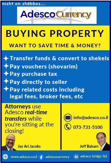 02-651-4030 www.eifermanrealty.com It’s never too late to file prior years’ tax returns! 02-999-2104 | 09-746-0623 | 03-527-3254 052-274-9999 Email: alan@ardcpa.com www.ardcpa.com Trusted US/Israeli tax services for over 30 years • U.S. Income Tax Returns • Israeli Tax Returns • Foreign Bank Reports (FBAR) • IRS Audit Representation • IRS Streamlined Program • Corporate Tax Planning • Estate and Trust Tax Planning • $1400 U.S. Child Credit • Investment Planning • Bookkeeping Services • Other Accounting Services ד“סב לייא תולבוה ד״סב www.premiummoving.co.il MovingPackingStorage 053-7272-815