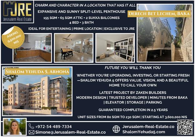 4 Bedrooms - 2.95M NIS / $800k USD