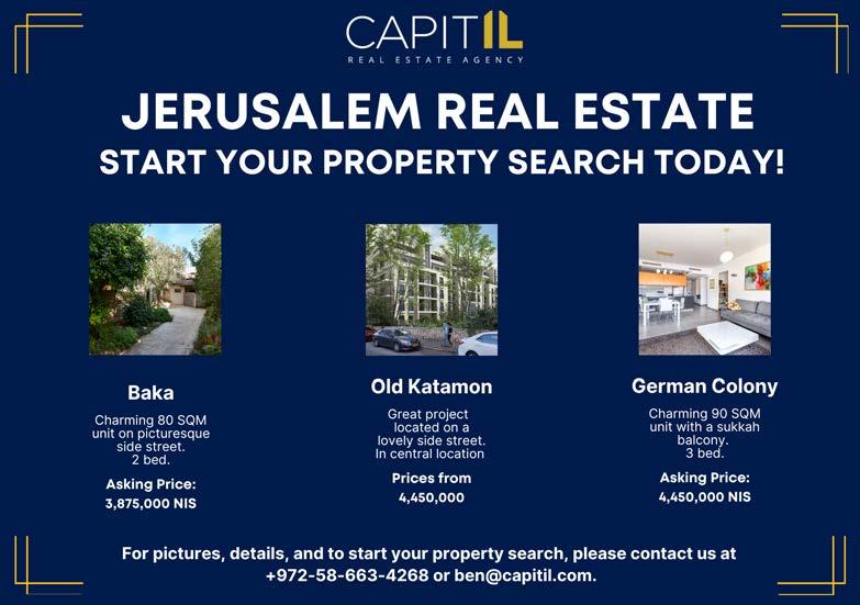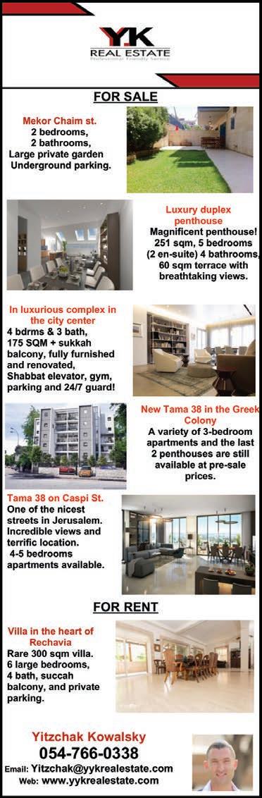 OU ISRAEL CENTER 75 Premiummoving.co.il 053-7272-815 PREMIUM MOVING & STORAGE ד"סב Hillel -052-5955-492 M Men achem -052-5955-073 Real Estate Brokerage Property Management (Maintenance & LT rental) Project Management (Renovations & Construction) ALL YOUR UNDER ONE ROOF! ErusalEm HomEs The Mendlowitz Family business with over 40 yearsof experience in the US and Israel! ENGLISH SPEAKING LAW FIRM Orit Madar,Adv. Family Law and Mediation Divorce, Child support, Custody Inheritance & Wills Yariv Madar, Adv. Bodily Injuries, Medical Malpractice Civil Litigation 10 Hillel St., Jerusalem | 36 Dam hamkabim st., Modiin 02-6255592, 050-3202909 Madar@netvision.net.il