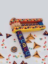 I am a designer with a life-long career spent in the world of fashion and textile design. My journey with beadwork began when as a child growing up in Zimbabwe, I was fascinated and inspired by traditional African beadwork. Every bead and every stitch told a story. My wooden ra’ashan and ozney haman are beaded with minute glass seed beads intricately woven together in a burst of color. While the bold design and colors clearly echo memories of my childhood in Africa, I never tire of the joy and zchut of celebrating the chagim here and calling Israel home!