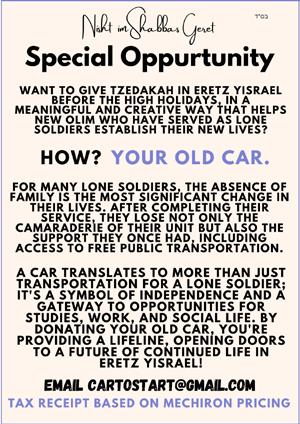 Send to: Yesh Ezra, POB 31476, Romema, Jerusalem, 9136101