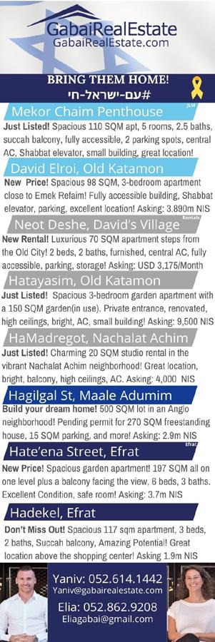 CONTACT BENJY SINGER: benjysinger@israelb.org or 053-285-1526