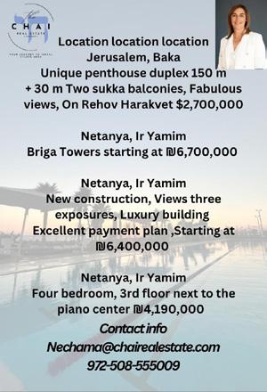 San simon - New 7 room duplex penthouse of 300m, Succa balcony, Shabbat elevator, parking, machsan