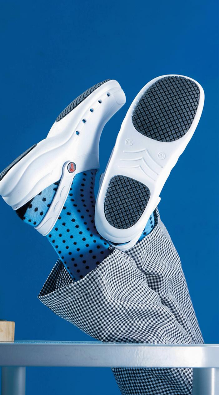 Textile insole mounted on polyurethane foam and recycled material for maximum comfort, enhanced cushioning, anatomical support, and impact absorption properties to reduce fatigue improve comfort during prolonged use. Technology registered and patented by Dian.