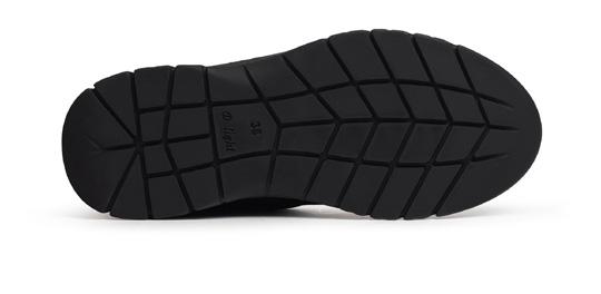 Ultra-lightweight polyurethane sole, optimized through its design, materials, and mechanical testing, ensuring functional and long-lasting footwear. Incorporates