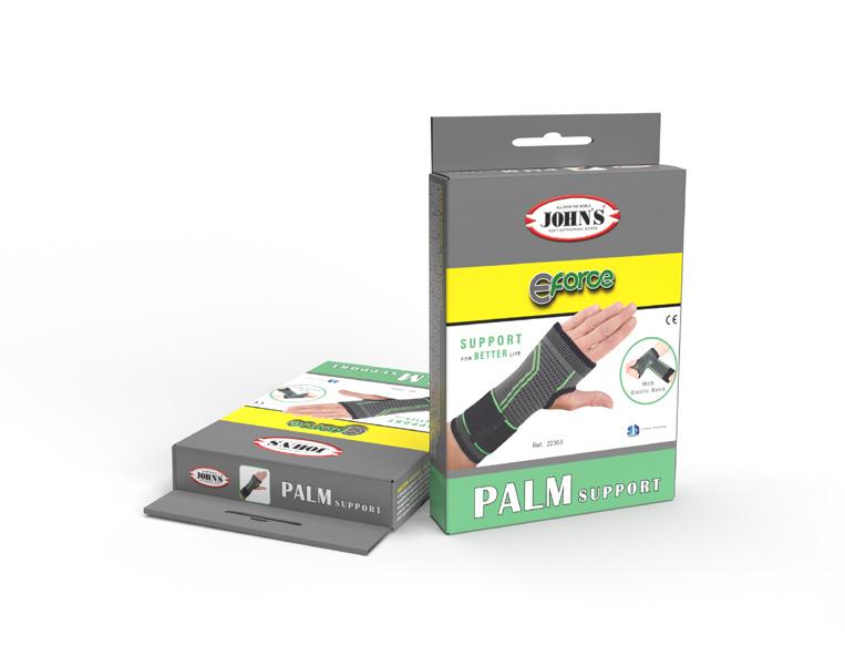 Η δέστρα καρπού - palm support e-force JOHN’S® με τρισδιάστατη τεχνολογία πλέξης “3D”, αεριζόμενο ύφασμα ελαστικό με κατάλληλη συμπίεση σε κάθε σημείο και προσαρμοσμένο στις σύγχρονες ανάγκες εργασίας – άθλησης και σε κάθε κινητική ανάγκη του ατόμου. Η σειρά προϊόντων e-force της JOHN’S® προστατεύουν και προφυλάσσουν από τραυματισμούς, επίσης στηρίζουν μετά από τραυματισμούς φοριούνται όλες τις ώρες είναι άνετα και εφαρμόζουν απόλυτα σε κάθε άρθρωση.