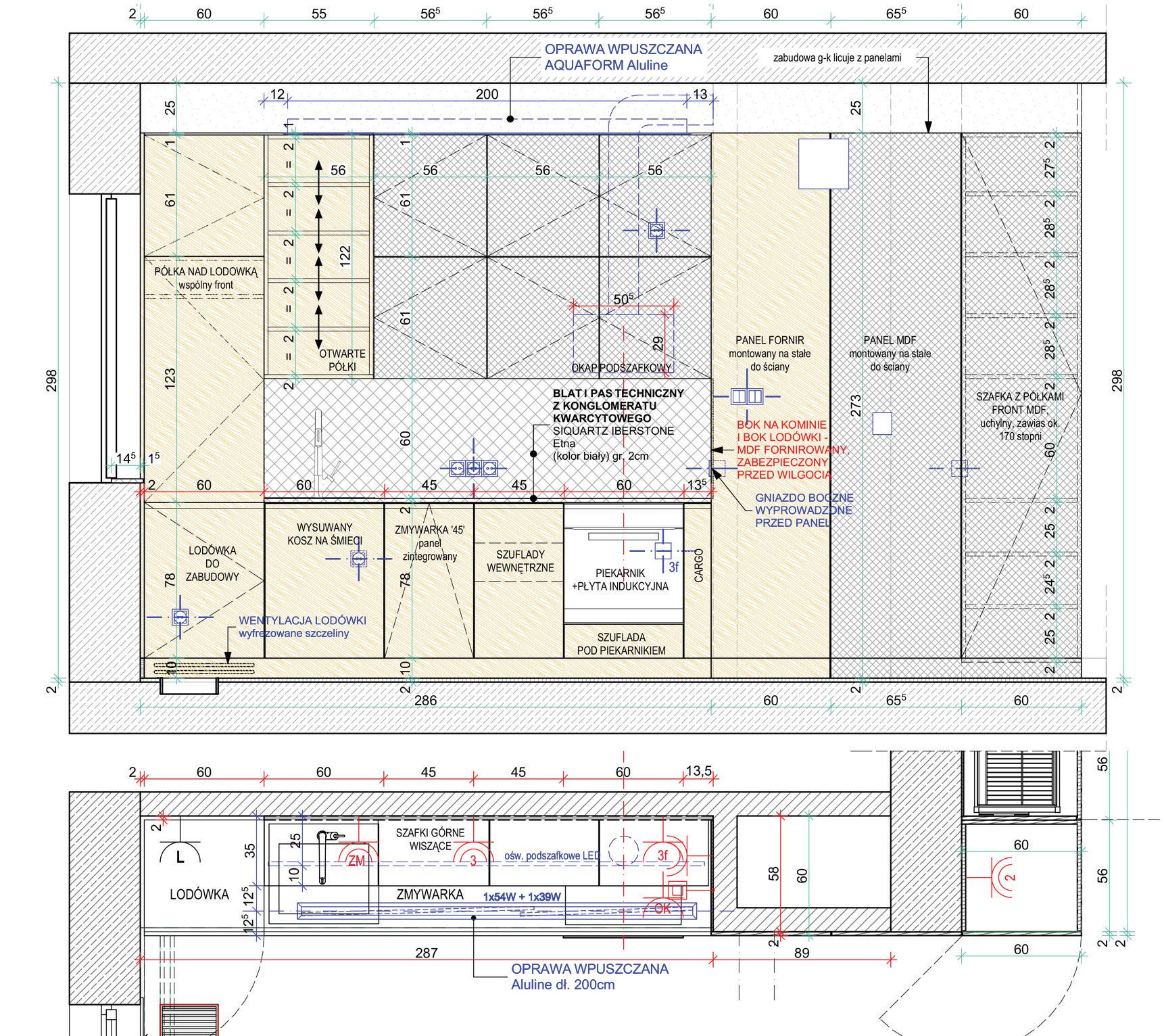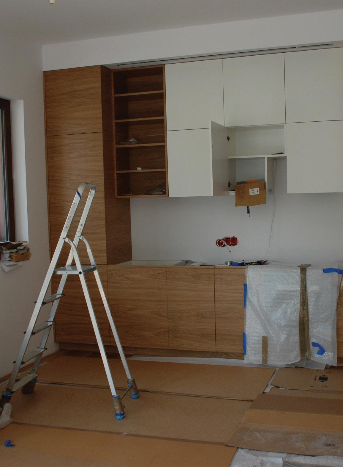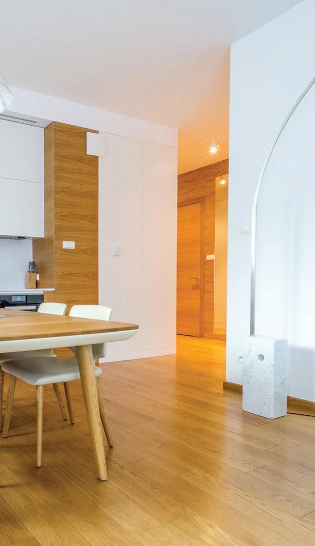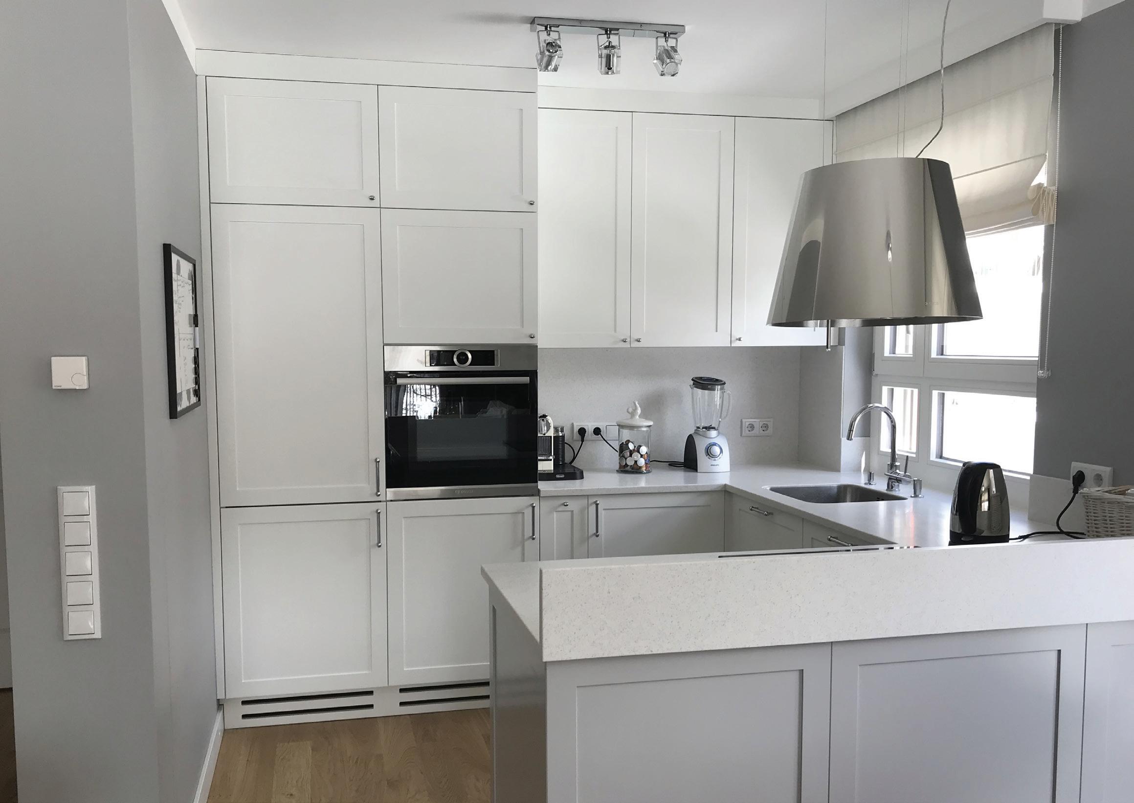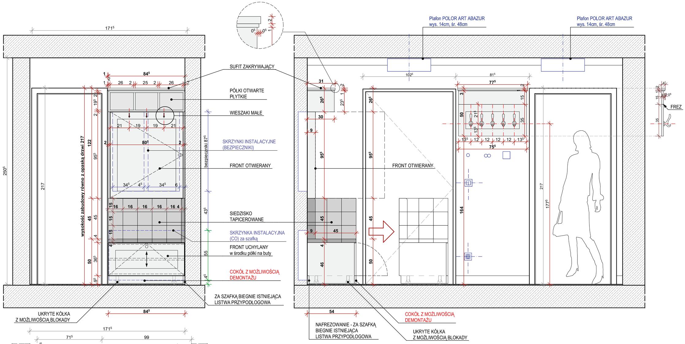 Mi tarea también incluyó la organización de la carpintería en Polonia (cocina, vestidor, muebles de baño, muebles de salón, muebles de recibidor, etc.). Todo el mobiliario a medida ha sido diseñado cuidando cada detalle y en colaboración con un carpintero, ya que en una ejecución a distancia no podía haber margen para correcciones.