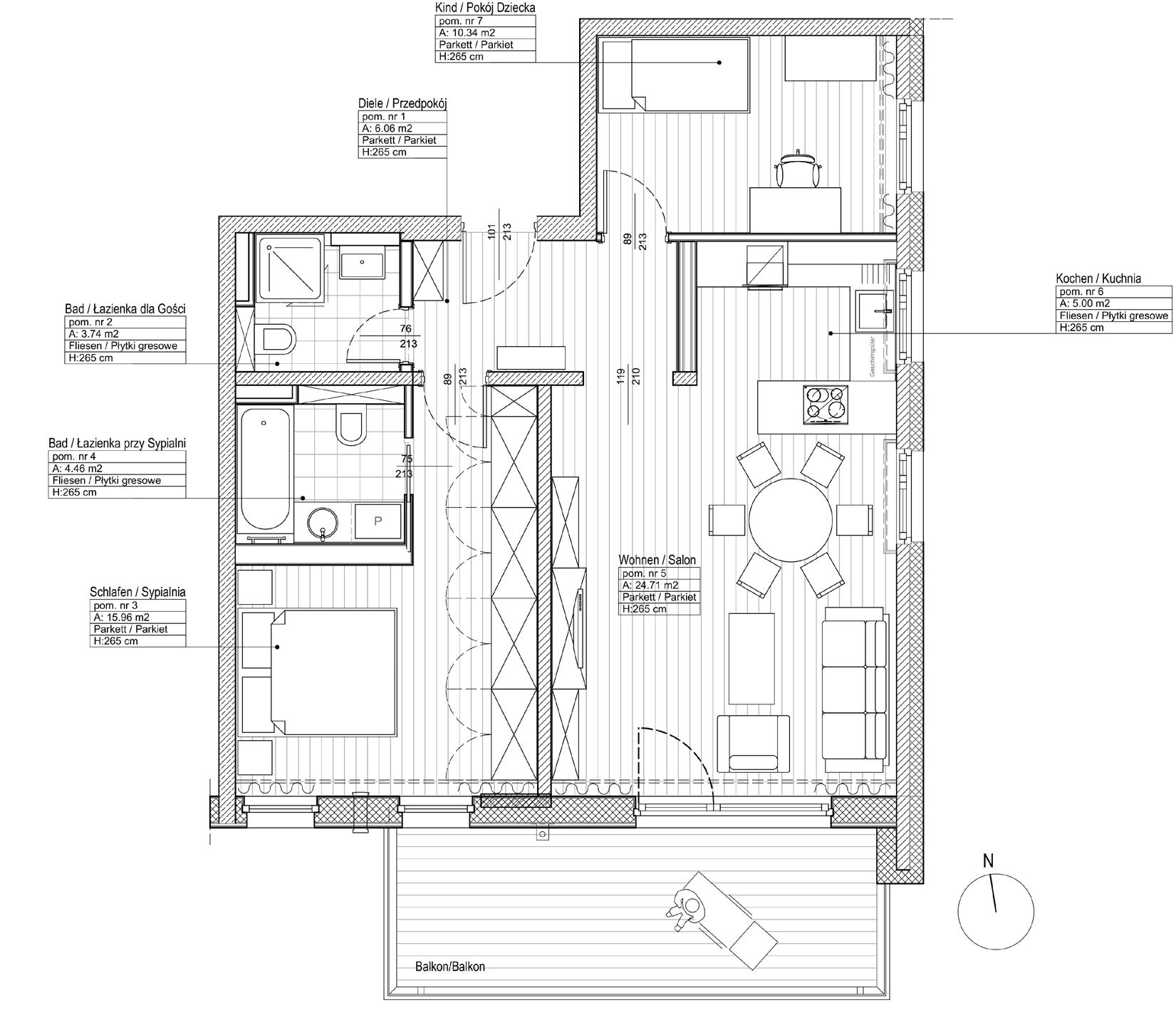 Mis clientes, una encantadora pareja polaca que vive en Múnich, me encargaron el diseño de su apartamento basado en el catálogo de materiales de acabados del promotor inmobiliario alemán.