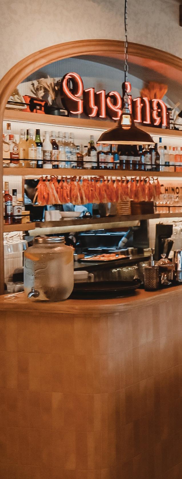• Usamos los materiales con los que se construyeron los molinos - tableros rústicos para el suelo, baldosas de terracota como revestimiento de la barra y los pilares, ladrillos envejecidos para las paredes.