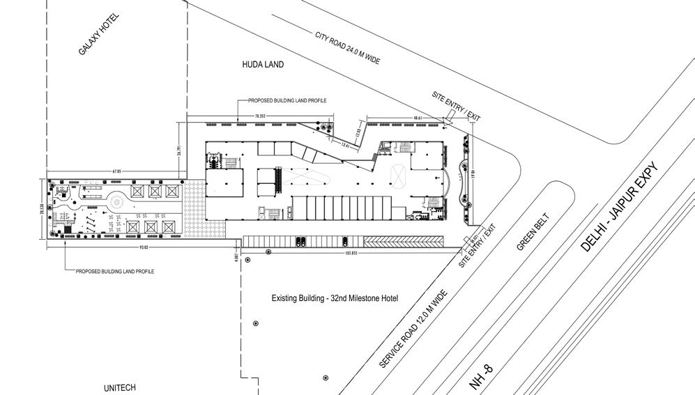 Level: 0.0 (with site context) Site area= 9719.24 sq. m Built up area= 3957 sq. m Total Built up area= 22,596.5 sq. m Ground coverage= 40.7 % FAR = 2.44
