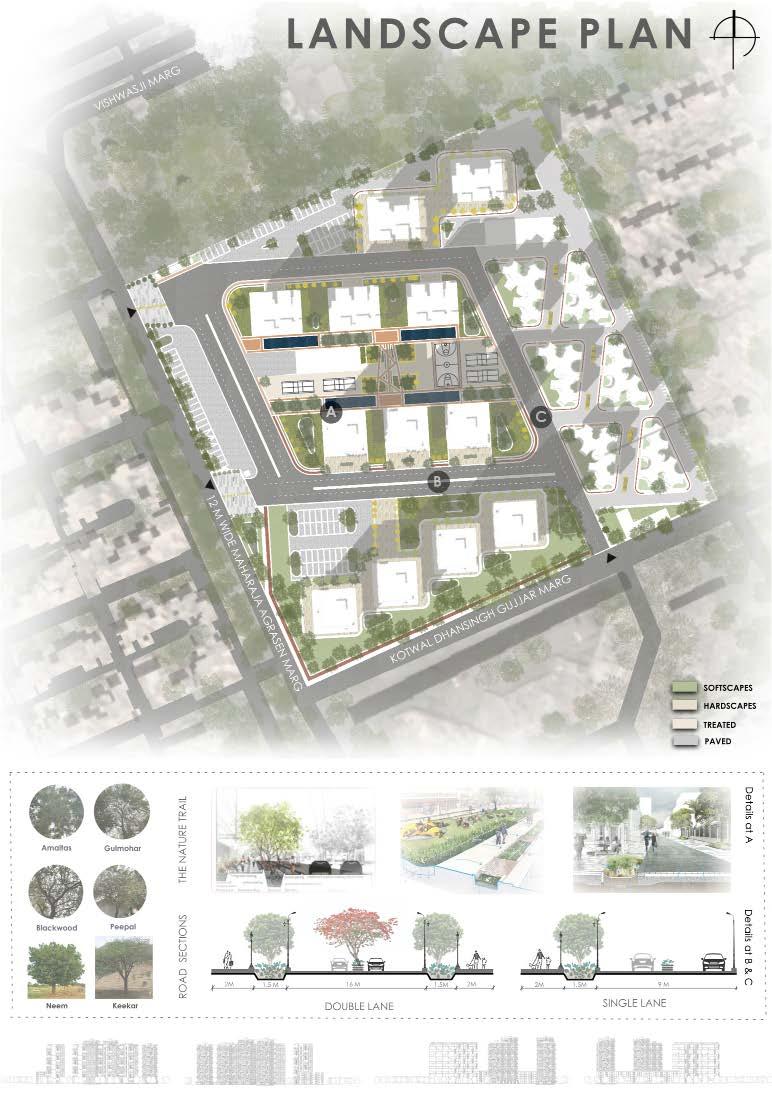 Thus, the competition invited to conceive and generate innovative ideas of productive public realm centred around the themes of improved agricultural productivity, enhancement of biodiversity, and ecologically sensitive urban designs in the grain of the city. The competition further questioned our penchant for crisp, ornamental, and high maintenance landscape as an ideal leisure ground for a public space. The challenge was on how carefully can we integrate food into the design of public space so that we accept this utilitarian landscape as a part of everyday landscape.