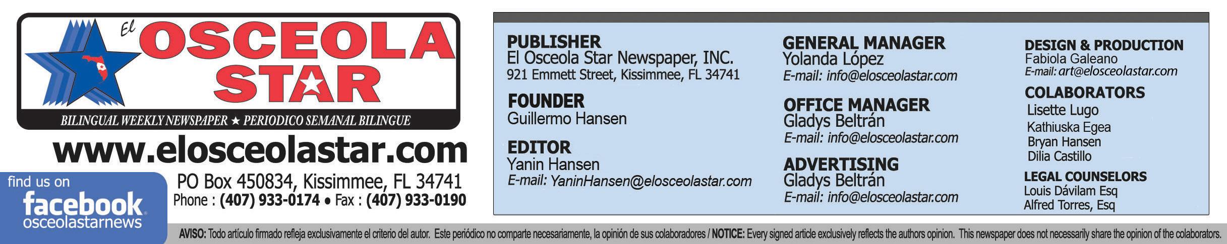 In moments like this, we are left with only the consolation that comes from God. On behalf of the group that makes up El Osceola Star Newspaper, Yolanda and Yanin Hansen, as well as all its employees, we wish you strength and peace.