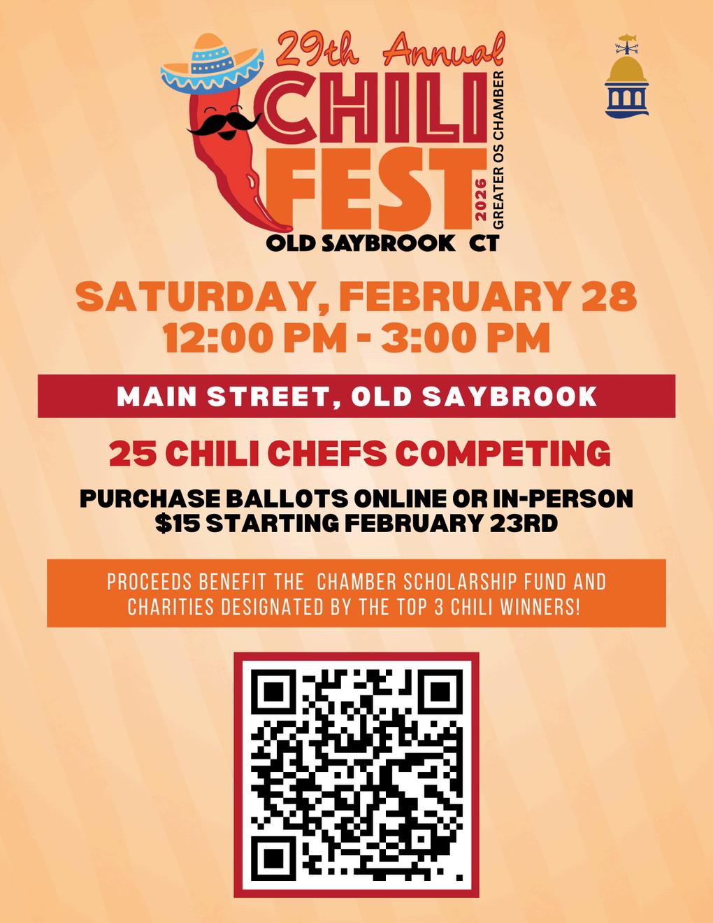 The 29th Annual Old Saybrook Chili Fest is an outdoor event, taking place along Main Street, Old Saybrook.