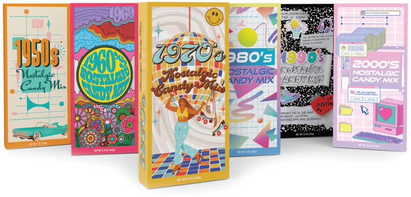 On the sweeter side of life, Nassau Candy has unveiled a new look for its popular Decades Box Nostalgic Candy Gift Sets The redesign serves up a more interactive experience, making the Decades Boxes more giftable, while featuring a new assortment of nostalgic goodies Each new Decades Box has the signa-