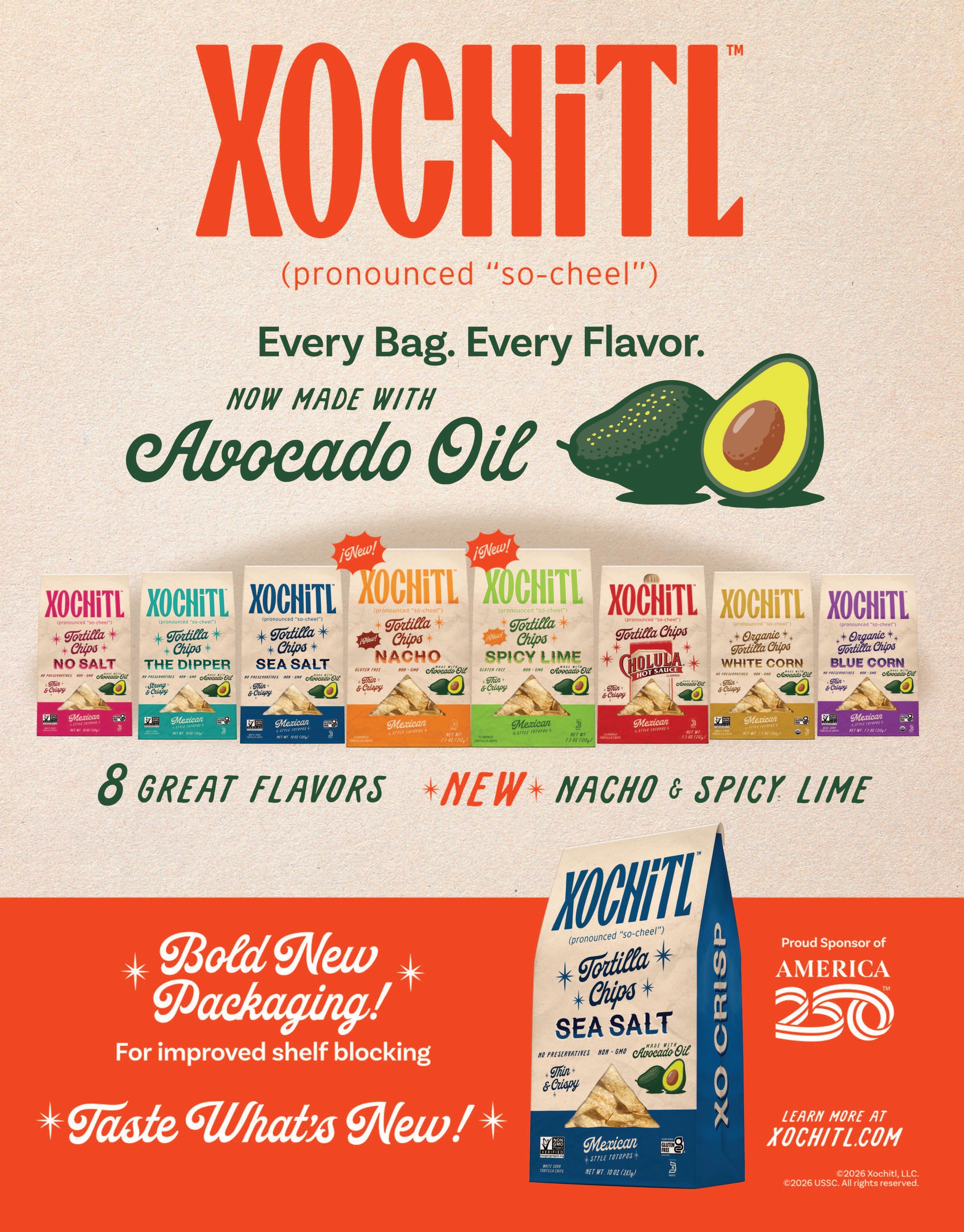 CS: We’ll continue delivering thin and crispy premium tortilla chips with a craveable authentic flavor – now gently cooked in avocado oil New flavors are coming and our commitment to quality remains unchanged Xochitl www.xochitl.com
