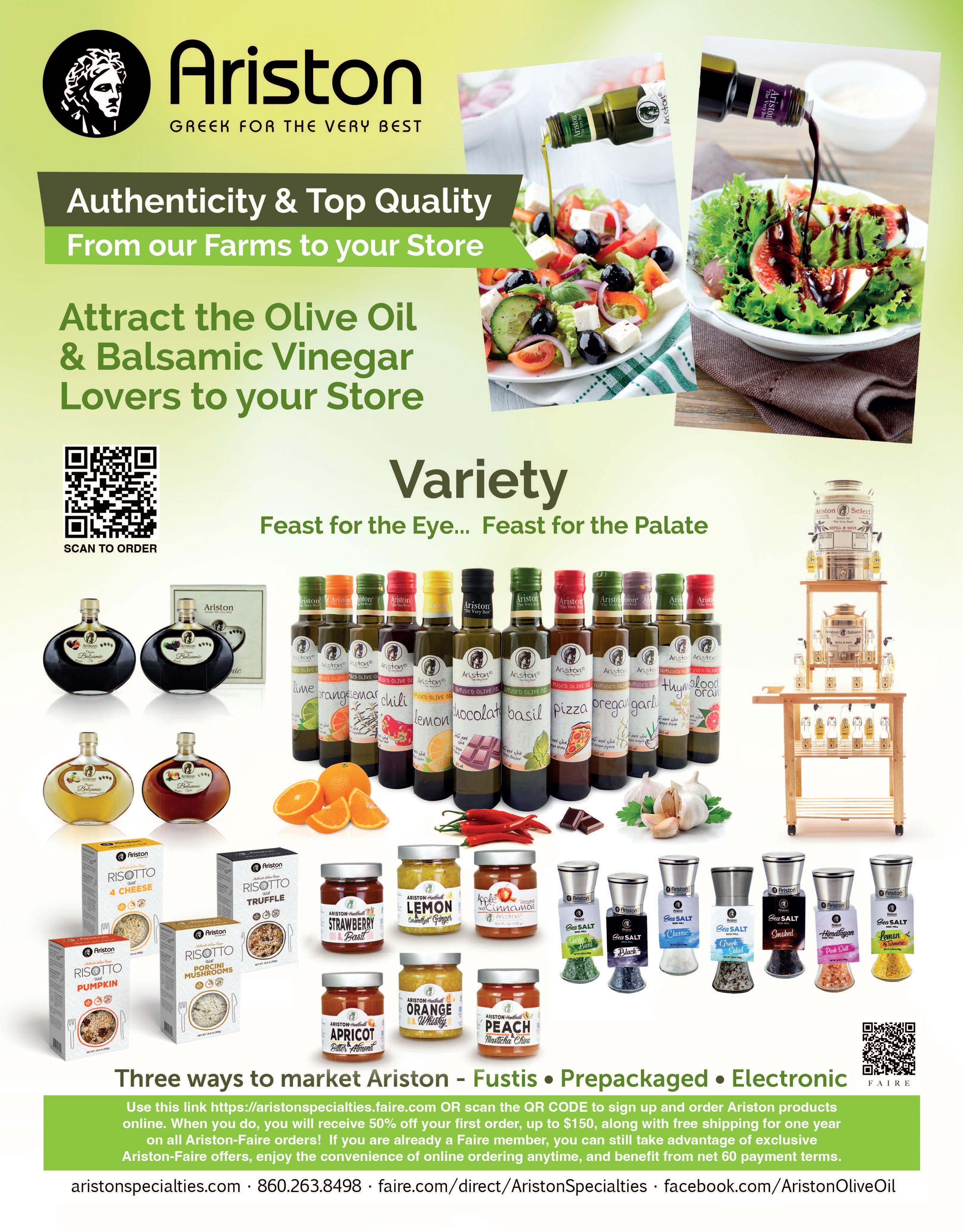 Ariston Specialties orders@aristonfoods.com http://faire com/direct/aristonspecialties www.aristonspecialties.com