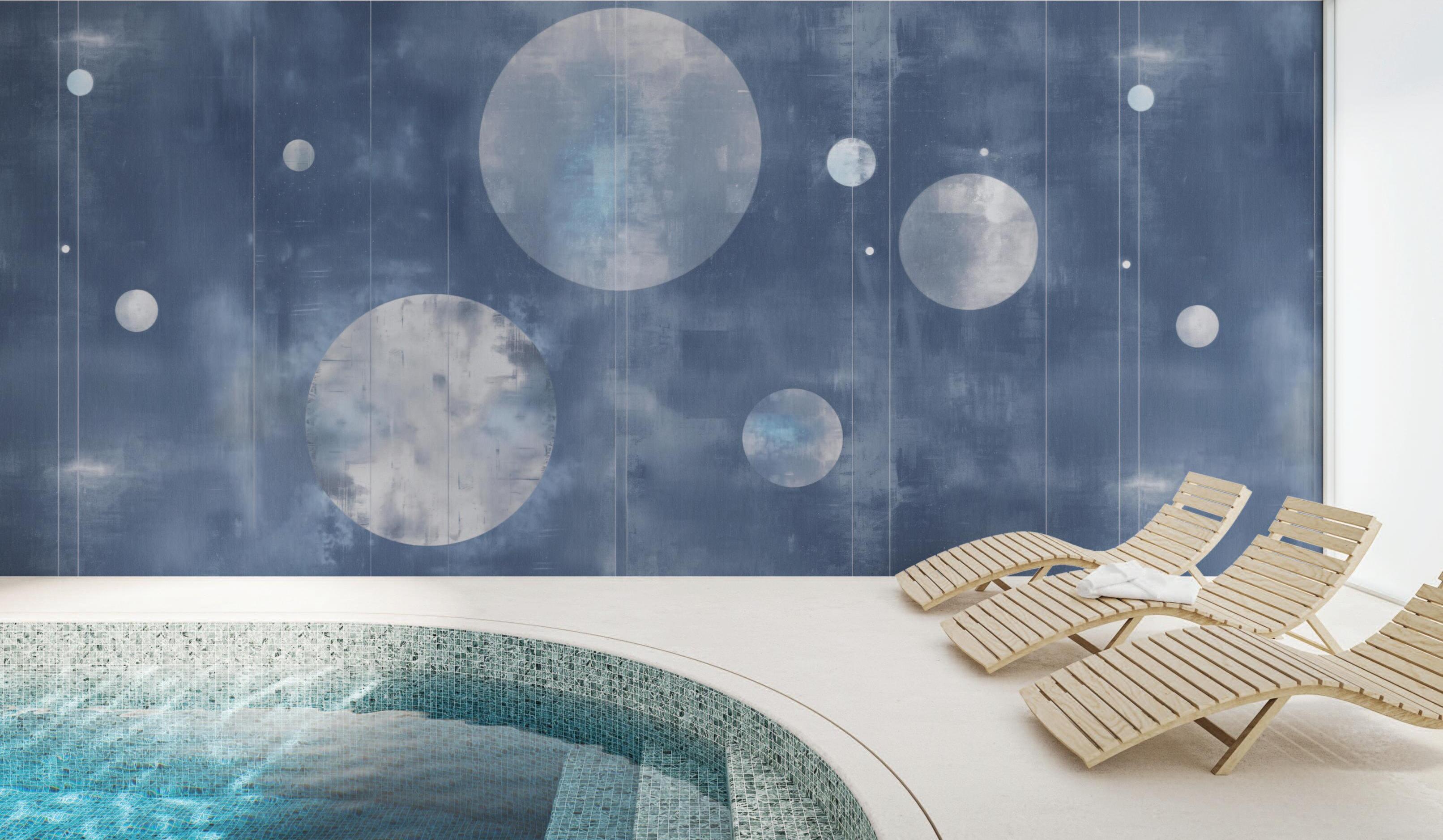 In bathroom settings, wallpapers can be applied not only to traditional walls but also to existing tiles, inside shower enc losures, behind sanitar y fixtures or around bathtubs, offering a continuous and highly customizable decorative solution