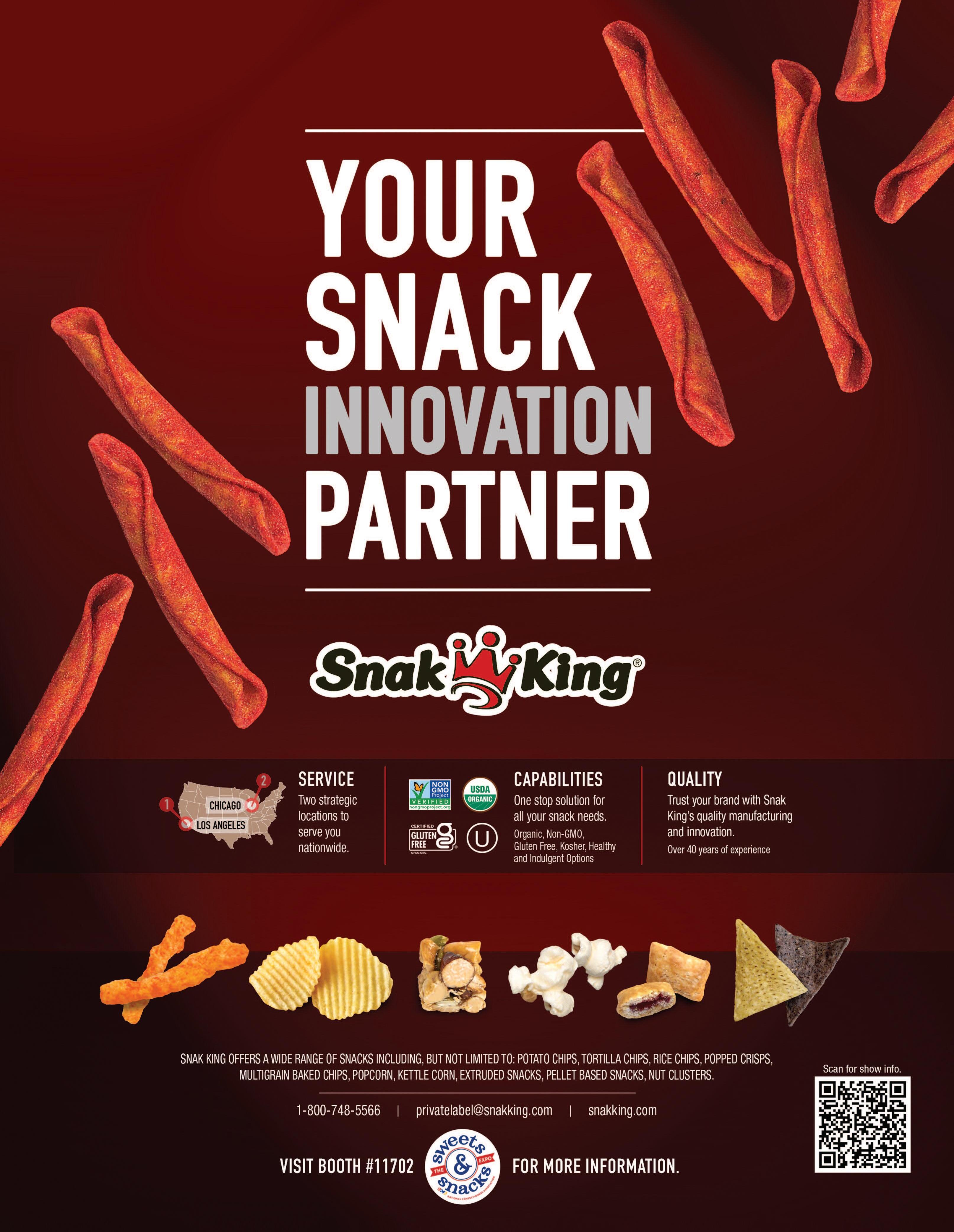 You can count on Snak King and its more than 40 years of dedication to quality and expertise in the industry to be your Snack Innovation Partner!